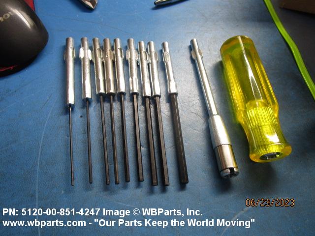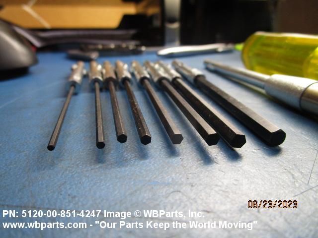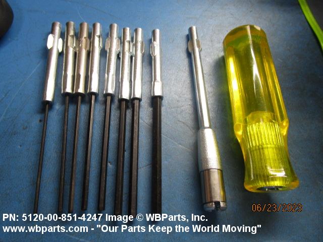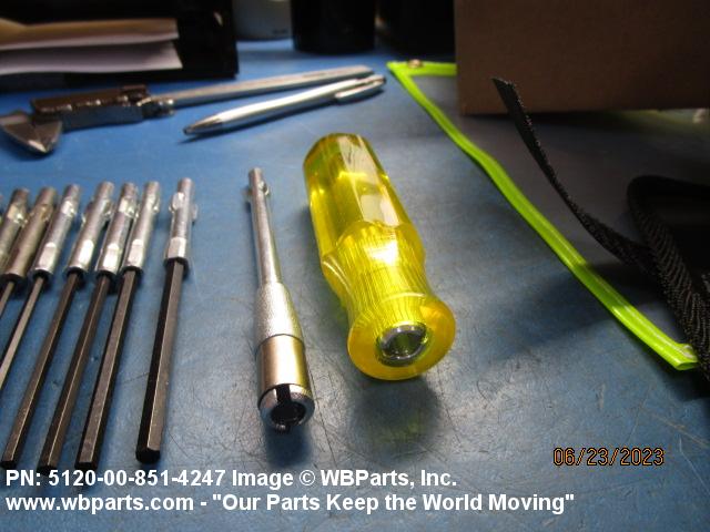 5120-00-851-4247 An item consisting of a set of screwdriver bits and a handle to accommodate the bits. The set of bits may consist of one type or various types having different characteristics. For items having a ratcheting mechanism, see SCREWDRIVER, RATCHET. Excludes SCREWDRIVER, JEWELER'S, SWIVEL KNOB and SCREWDRIVER, OFFSET.