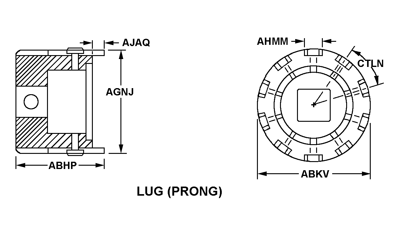 | ANGLE BETWEEN LUGS | 45.0 DEGREES NOMINAL |