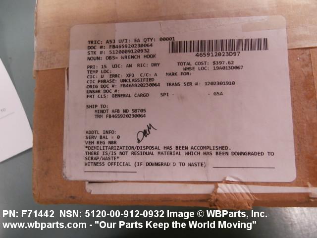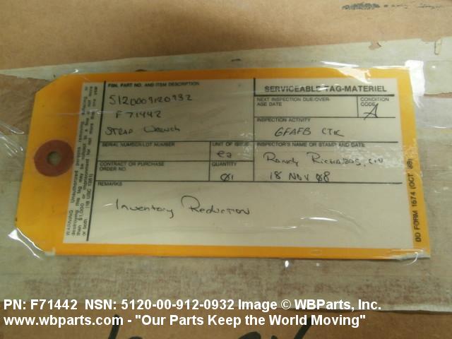 Part Alternates: F71442, 5120-00-912-0932, 00-912-0932, 5120009120932, 009120932