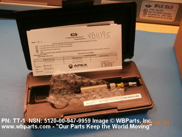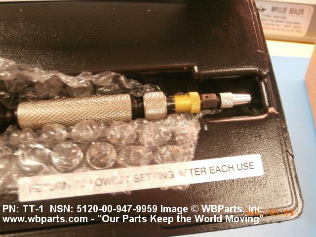 5120-00-947-9959 A manual tool for tightening vairous fasteners to a precise torque value. Consists of a handle and drive to accommodate female square drive sockets, screwdriver bits, and other types of wrenching adapters. Torque value may be manually set and adjusted by user of may be provided as preset for production line use. A signaling device is generally provided to indicate when set torque value is reached. Handle is spun in-line with axis of fastener rotation to apply torque. For items with handles that are swung at right angle to axis of fastener rotation to apply torque, see WRENCH, TORQUE.2025120000065150057Medical and Surgical Instruments, Equipment, and Supplies