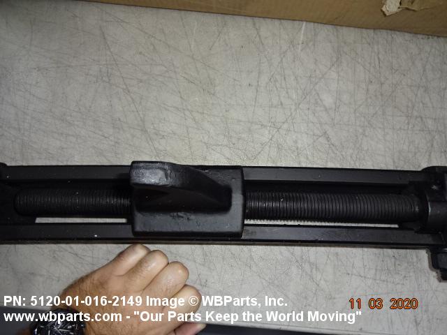 5120-01-016-2149 A fixture used to pull together two track ends, of a full tracked vehicle, for the purpose of connection. May also be used for holding the tension of a track while replacing a link.
