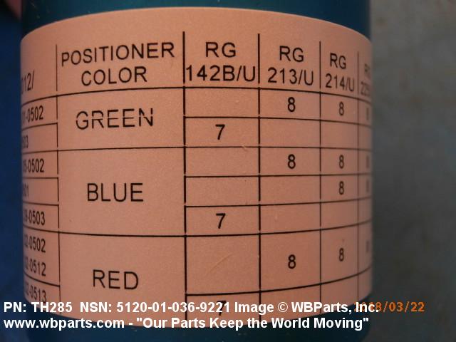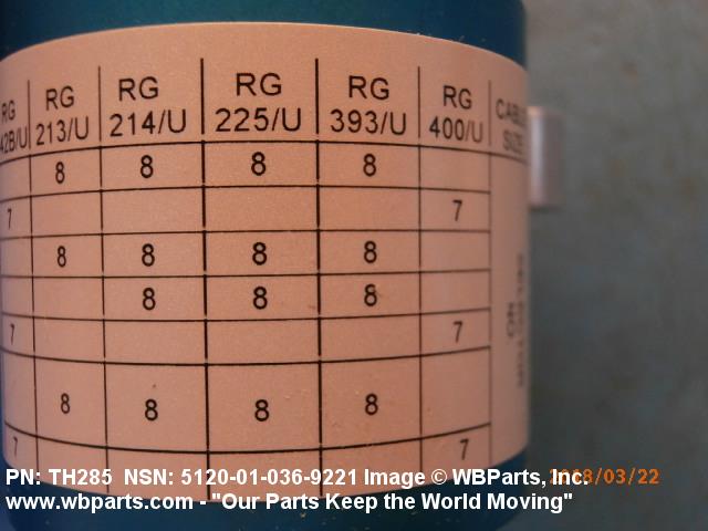 Part Alternates: M22520/1-13, M22520113, M22520-1-13, MILC22520, MIL-C-22520, MIL-C-22520/1, MILC225201, TH285, VG95236T102, VG95236-T102, 2622 540 09265, 262254009265, 616408, 91631290, 5120-01-036-9221, 01-036-9221, 5120010369221, 010369221
