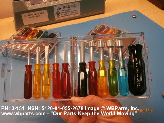 | GENERAL CHARACTERISTICS ITEM DESCRIPTION | CONTAINS:2 PHILLIPS SCREWDRIVERS NO. 1 AND 2 P1,P2: 3 SLOTTED SCREWDRIVERS 1/8 IN P181,3/16 IN P3161,AND 1/4 IN P141; 5 NUTDRIVERS W/HEX OPENINGS 3/16 IN P6,1/4 IN P8,5/16 IN P10,11/32 IN P11,AND 3/8 IN P12-NSN 5120-0O-826-8302; TORQUE HANDLE AND CASE |