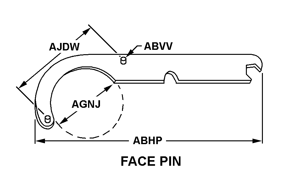 5120-01-104-6042 A tool on which are located one or more pins, lugs, holes, keyways, or hooks, designed to engage matching holes, slots, or projections on a coupling, nut, or the like; for exerting a torsional force, concentrated at a point or points of a mating part, tending to turn the mating part about an axis. The drive end may have a hole for a separate straight bar used as a handle. Excludes WRENCH, BUNG.