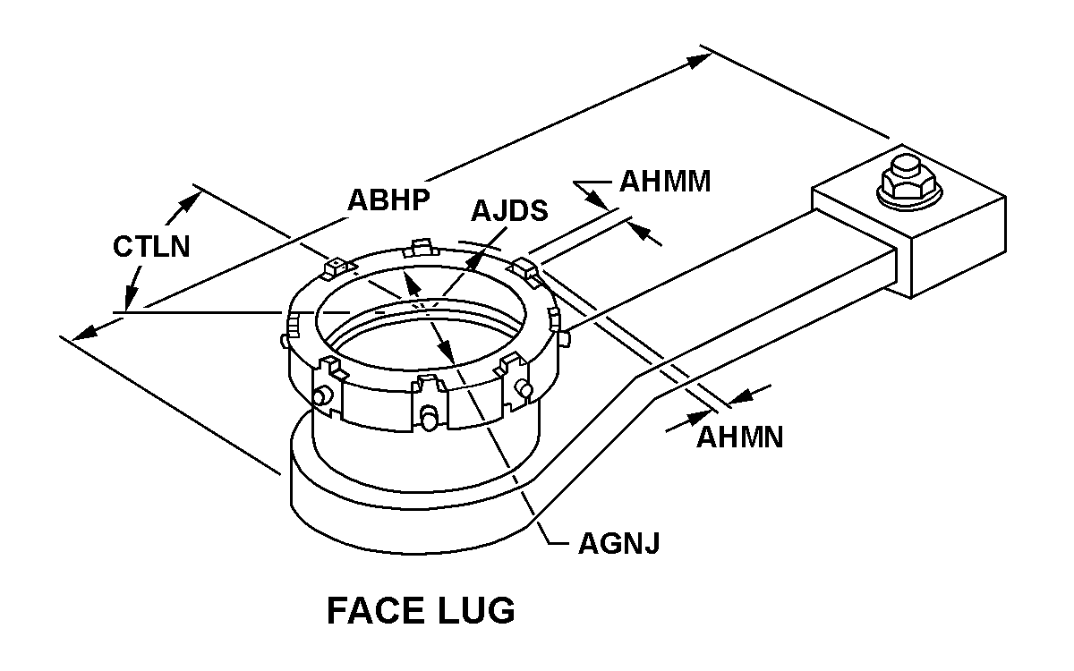 | ANGLE BETWEEN LUGS | 45.0 DEGREES NOMINAL |