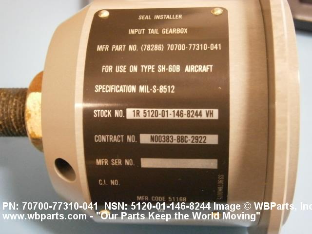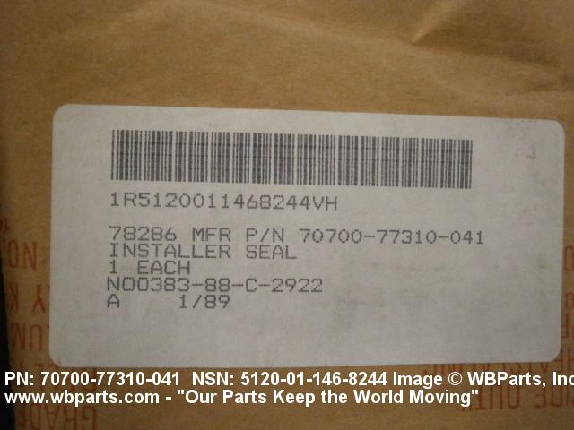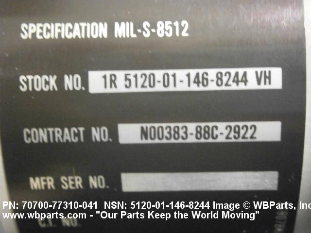 Part Alternates: 70700-77310-041, 5120-01-146-8244, 01-146-8244, 5120011468244, 7070077310041, 011468244