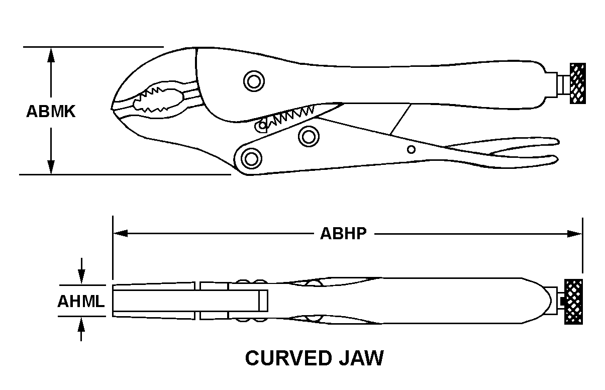 5120-01-147-3593 A wrench having a plier-like handle, an adjustable toggle pressure lock mechanism and serrated jaws which may be straight, straight and curved, or curved. For smooth jaw items, see CLAMP, PLIER.