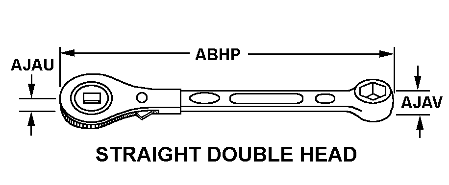 5120-01-210-0907 A single or double end wrench having a reversible or nonreversible ratchet socket on one or both ends. One end may have a fixed socket or handgrip. It may have a wrench opening through the handle. For items with drive tang, see HANDLE, SOCKET WRENCH.