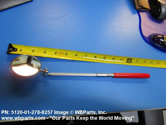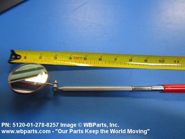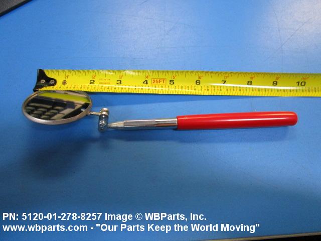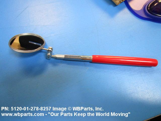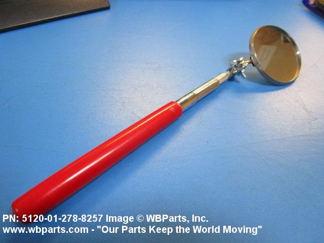 5120-01-278-8257 An item which has a mirror attached to one end of a rod in such a manner that it may be inserted past obstructions. The mirror can be fixed or adjustable and may or may not have locking facilities. The rod may be telescoping or flexible and/or equipped with an integrated light.