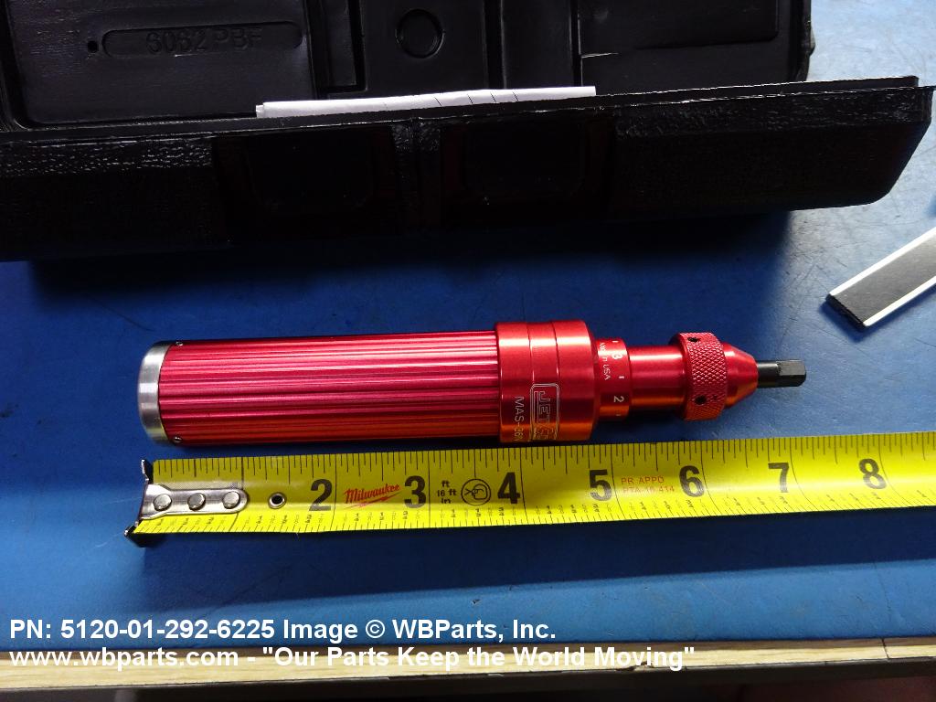 5120-01-292-6225 A manual tool for tightening vairous fasteners to a precise torque value. Consists of a handle and drive to accommodate female square drive sockets, screwdriver bits, and other types of wrenching adapters. Torque value may be manually set and adjusted by user of may be provided as preset for production line use. A signaling device is generally provided to indicate when set torque value is reached. Handle is spun in-line with axis of fastener rotation to apply torque. For items with handles that are swung at right angle to axis of fastener rotation to apply torque, see WRENCH, TORQUE.2025120000065150057Medical and Surgical Instruments, Equipment, and Supplies