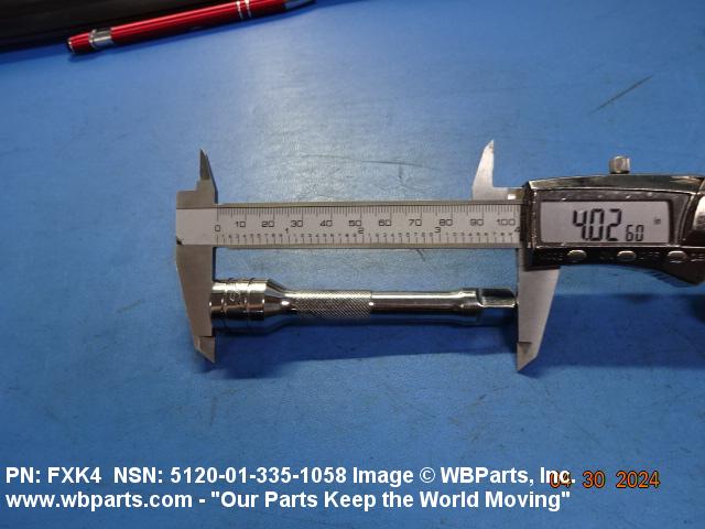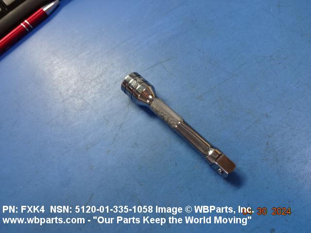 5120-01-335-1058 An attachment for extending the drive length of socket wrenches or handles. The body of the item may be either a coil spring or a solid bar. The items permit the connection of ends that are designed for direct mating to each other. See also ADAPTER, SOCKET WRENCH; UNIVERSAL JOINT, SOCKET WRENCH ATTACHMENT; and ADAPTER, SOCKET, CROWFOOT SOCKET WRENCH HEAD.20251200032Hand Tools, Nonedged, Nonpowered51300024Hand Tools, Power Driven