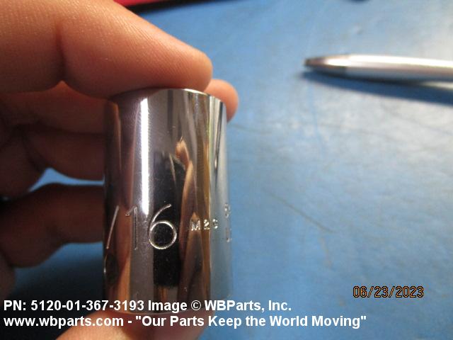 5120-01-367-3193 An item having an internal drive at one end made to fit into the external drive end of a socket wrench handle, torque wrench, or power driven tool. The opposite end consists of various internal wrench shapes such as hexagon or square. It may include an integral universal joint.20251200032Hand Tools, Nonedged, Nonpowered51300024Hand Tools, Power Driven