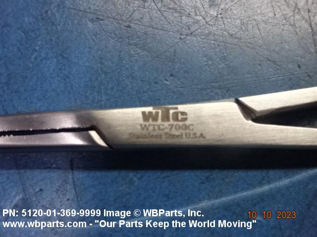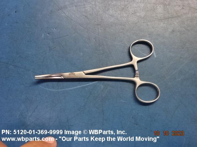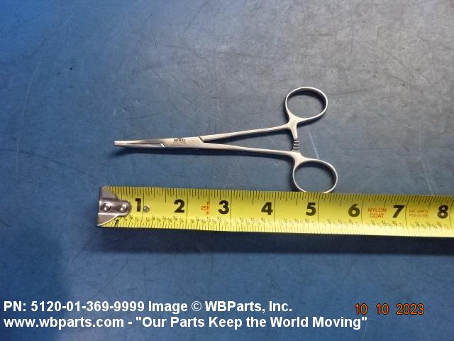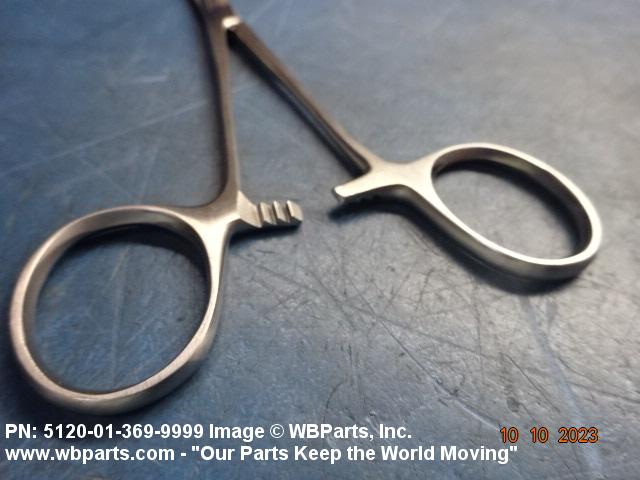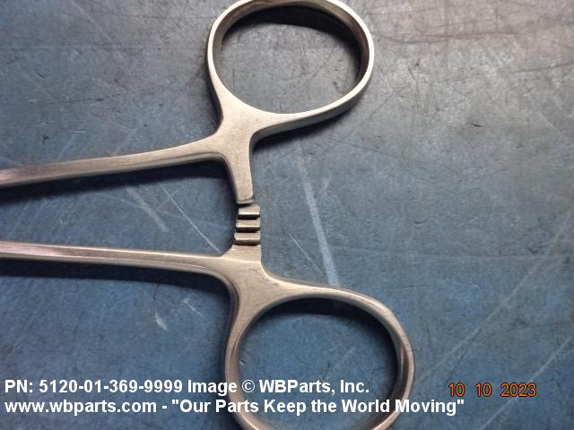 5120-01-369-9999 A device designed to hold another item by grasping it in its jaws and retaining the grasp with a snap-lock type catch on its handles. It will have straight or curved, needle nose type jaws and handles with thumb and finger holes. For items designed for surgical use see FORCEPS (as modified). For items without a catch type device on the handles see PLIERS and PLIERS (as modified). See also HEAT SINK, SOLDERING AID.