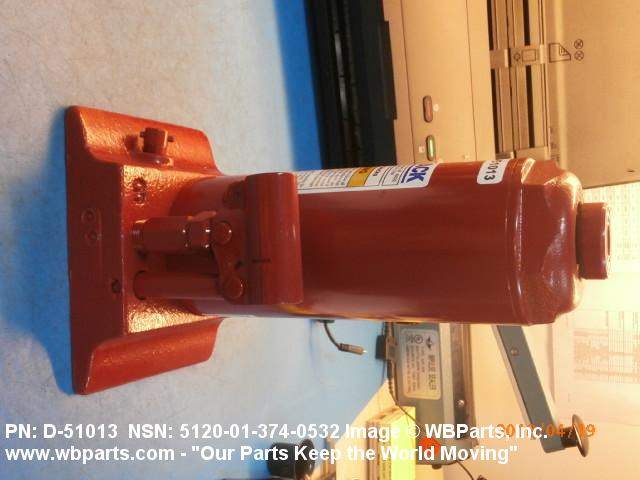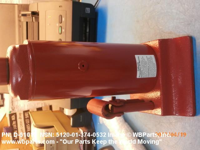 5120-01-374-0532 A device consisting of a ram, hydraulically actuated by a hand-operated pump(s). The units may be combined on a single base, in a common body or be of the remote control type. The ram is actuated by a hydraulic force in one direction only. Excludes JACK, BUMPER; dolly type jacks; folding tripod type jacks and items with reversing valve mechanisms for performing pulling actions by changing the direction of the hydraulic force applied to the ram.
