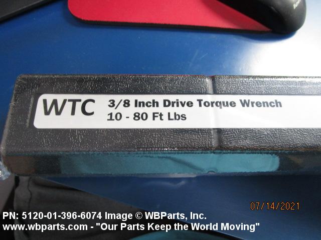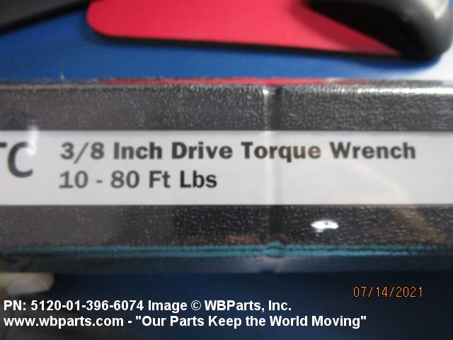 5120-01-396-6074 A manual tool for tightening various fasteners to a precise torque value. Consists of a handle and drive to accommodate female square drive sockets and other types of wrenching adapters. Torque value may be manually set and adjusted by user or may be provided as preset for production line use. A signaling device is generally provided to indicate when set torque value is reached. Handle is swung at right angle to axis of fastener rotation to apply torque. For items with handles that are spun in-line with axis of fastener rotation to apply torque, see SCREWDRIVER, TORQUE.2025120000065200043Dental Instruments, Equipment, and Supplies