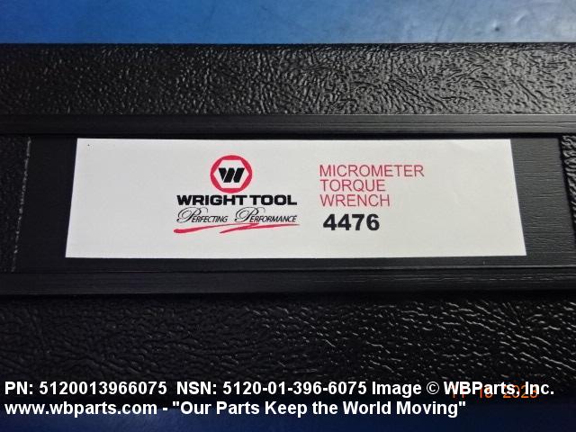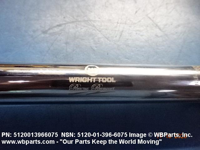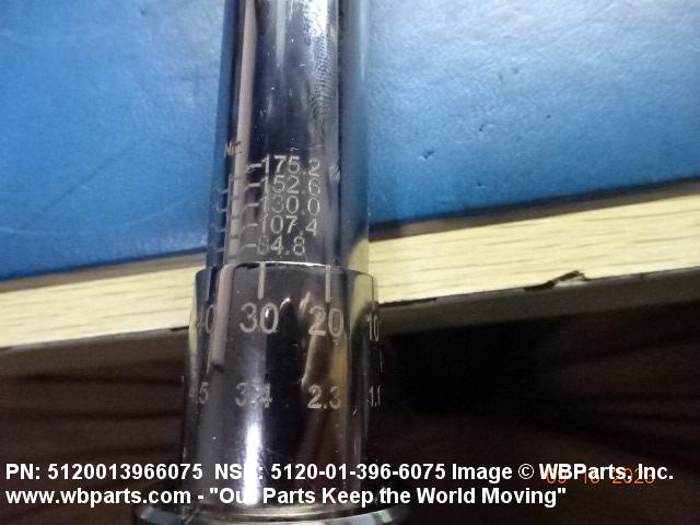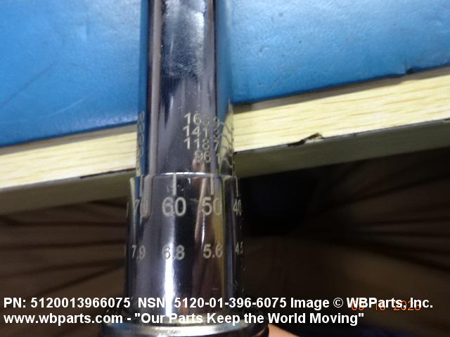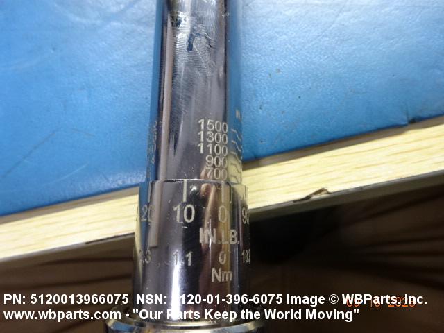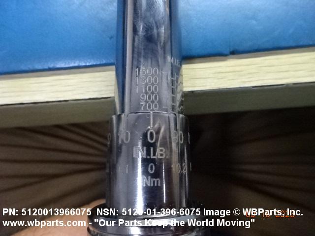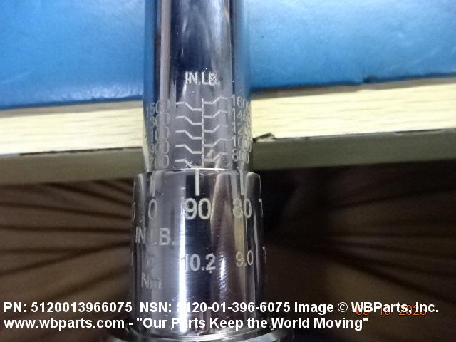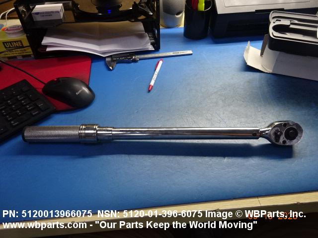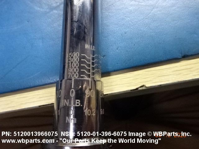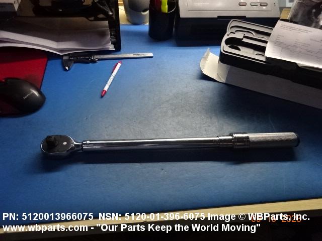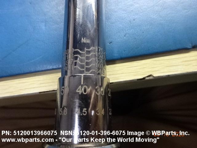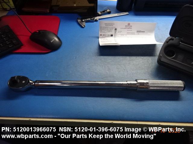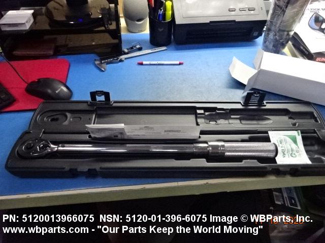 5120-01-396-6075 A manual tool for tightening various fasteners to a precise torque value. Consists of a handle and drive to accommodate female square drive sockets and other types of wrenching adapters. Torque value may be manually set and adjusted by user or may be provided as preset for production line use. A signaling device is generally provided to indicate when set torque value is reached. Handle is swung at right angle to axis of fastener rotation to apply torque. For items with handles that are spun in-line with axis of fastener rotation to apply torque, see SCREWDRIVER, TORQUE.2025120000065200043Dental Instruments, Equipment, and Supplies