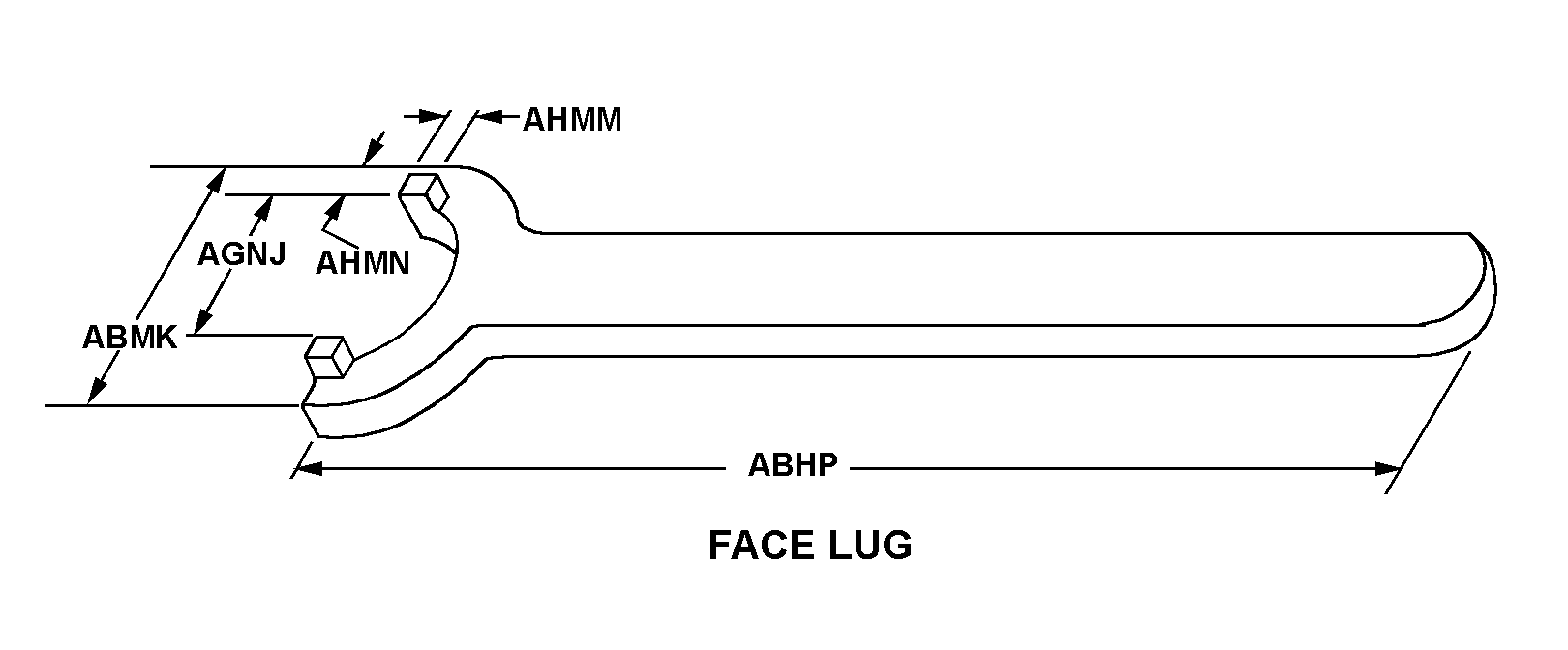 5120-01-425-8879 A tool on which are located one or more pins, lugs, holes, keyways, or hooks, designed to engage matching holes, slots, or projections on a coupling, nut, or the like; for exerting a torsional force, concentrated at a point or points of a mating part, tending to turn the mating part about an axis. The drive end may have a hole for a separate straight bar used as a handle. Excludes WRENCH, BUNG.