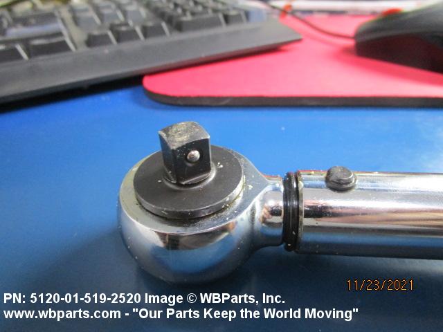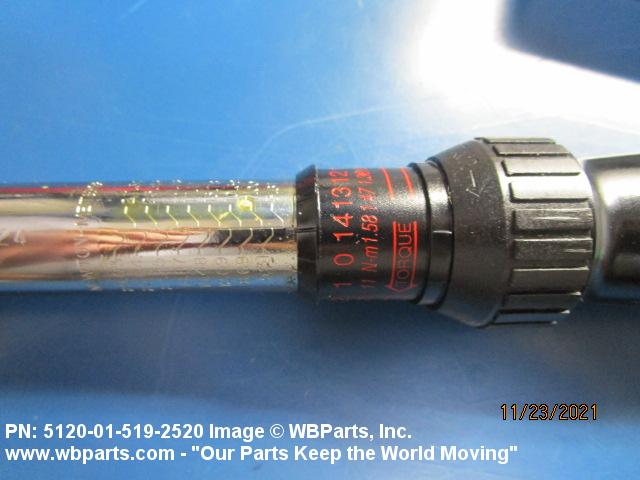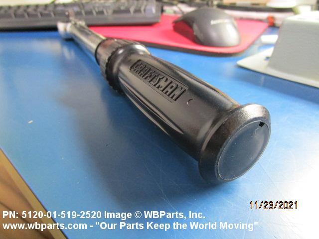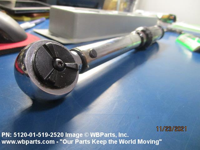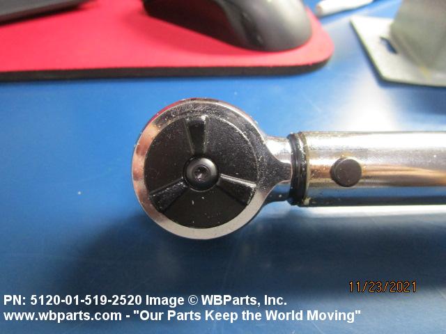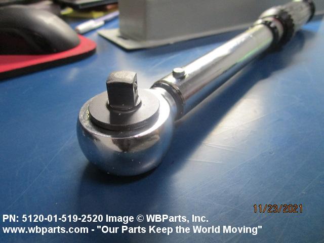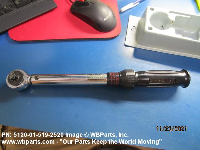 5120-01-519-2520 A manual tool for tightening various fasteners to a precise torque value. Consists of a handle and drive to accommodate female square drive sockets and other types of wrenching adapters. Torque value may be manually set and adjusted by user or may be provided as preset for production line use. A signaling device is generally provided to indicate when set torque value is reached. Handle is swung at right angle to axis of fastener rotation to apply torque. For items with handles that are spun in-line with axis of fastener rotation to apply torque, see SCREWDRIVER, TORQUE.2025120000065200043Dental Instruments, Equipment, and Supplies