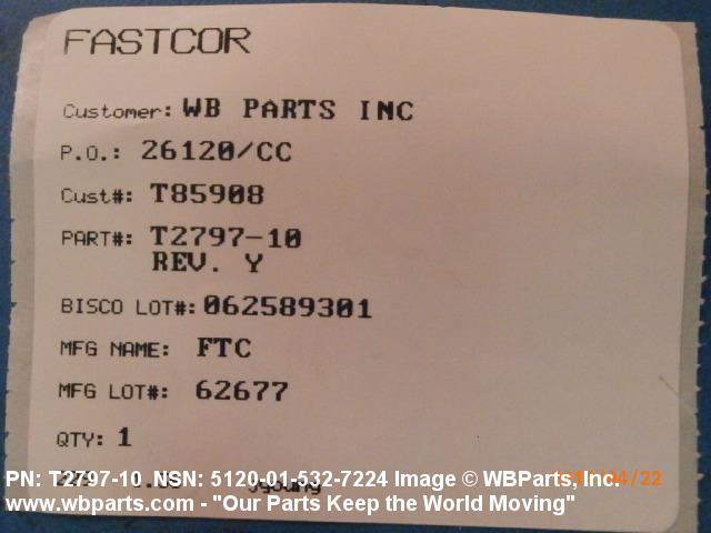 Part Alternates: T279710, T2797-10, 5120-01-532-7224, 01-532-7224, 5120015327224, 015327224