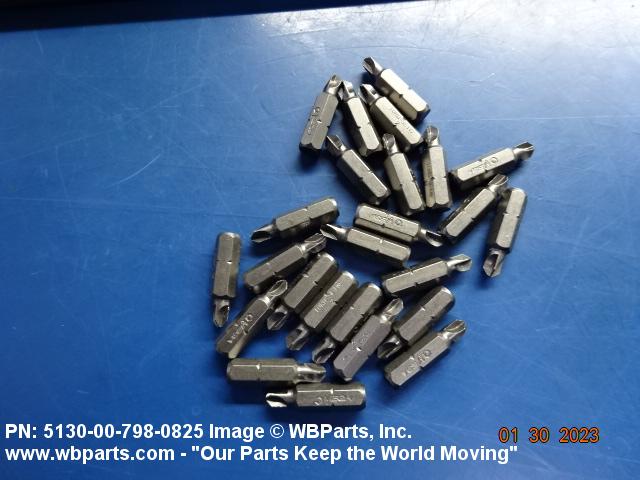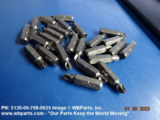 5130-00-798-0825 An item designed for use with a HOLDER, SCREWDRIVER BIT (as modified), part of a BIT SET, SCREWDRIVER, or a replacement part for a SOCKET WRENCH ATTACHMENT, SCREWDRIVER. It has a screwdriving tip at one or both ends. See also, SOCKET WRENCH ATTACHMENT, SCREWDRIVER.20251200032Hand Tools, Nonedged, Nonpowered51300024Hand Tools, Power Driven