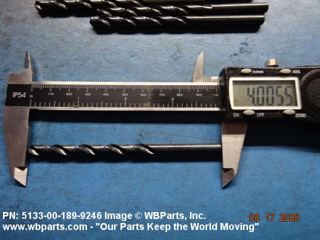 5133-00-189-9246 An end cutting tool having two or more cutting edges, and having helical flutes or grooves adjacent thereto for the admission of coolant and the ejection of cuttings or chips. It is used for drilling holes in various materials. Excludes DRILL, MASONRY (as modified); and DRILL,TWIST, BONE. See also DRILL, PIVOT, JEWELER'S and DRILL, HARDENED STEEL, CARBIDE TIPPED.