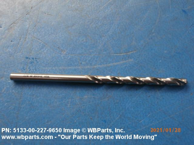 5133-00-227-9650 An end cutting tool having two or more cutting edges, and having helical flutes or grooves adjacent thereto for the admission of coolant and the ejection of cuttings or chips. It is used for drilling holes in various materials. Excludes DRILL, MASONRY (as modified); and DRILL,TWIST, BONE. See also DRILL, PIVOT, JEWELER'S and DRILL, HARDENED STEEL, CARBIDE TIPPED.