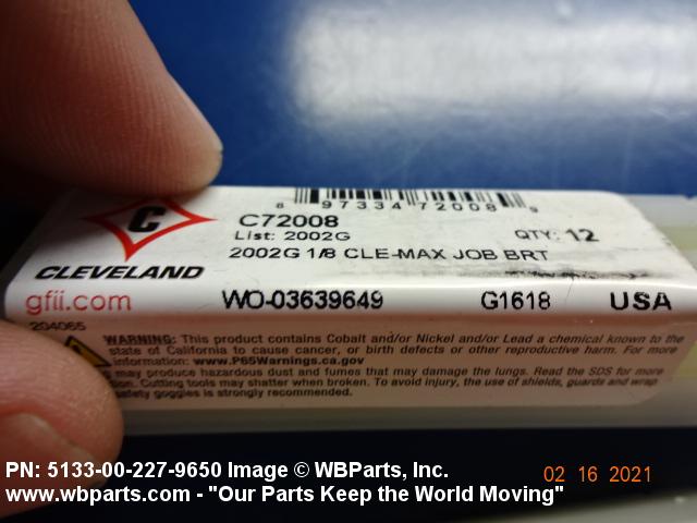 | 917 1/8 | 13130 | CLEVELAND TWIST DRILL CO DIV OF GREENFIELD INDUSTRIES INC |
