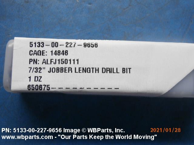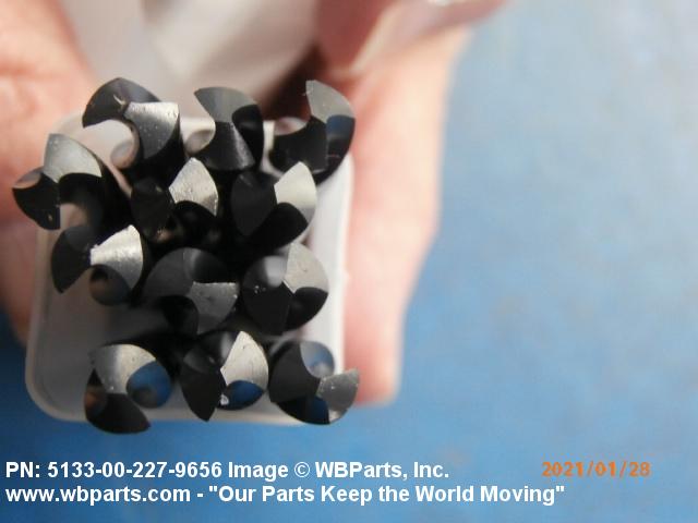5133-00-227-9656 An end cutting tool having two or more cutting edges, and having helical flutes or grooves adjacent thereto for the admission of coolant and the ejection of cuttings or chips. It is used for drilling holes in various materials. Excludes DRILL, MASONRY (as modified); and DRILL,TWIST, BONE. See also DRILL, PIVOT, JEWELER'S and DRILL, HARDENED STEEL, CARBIDE TIPPED.