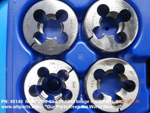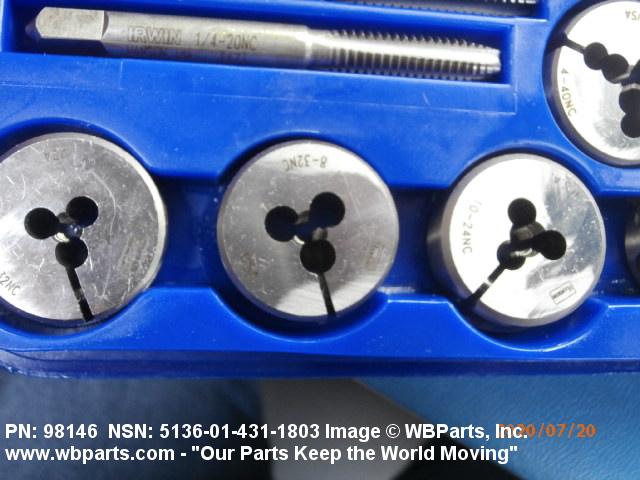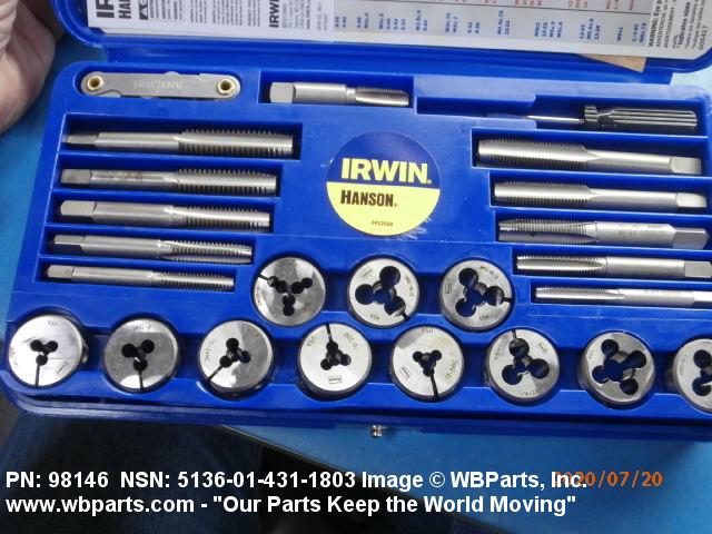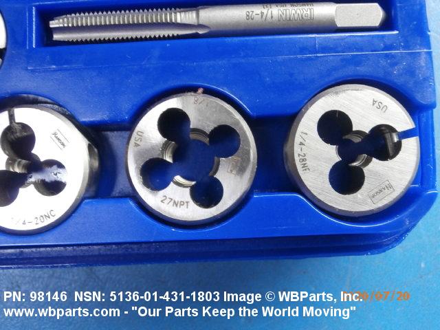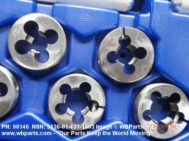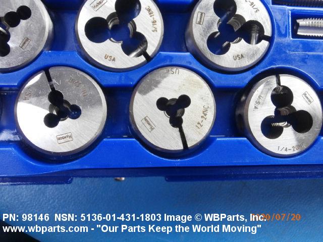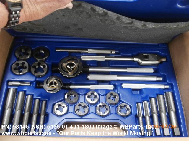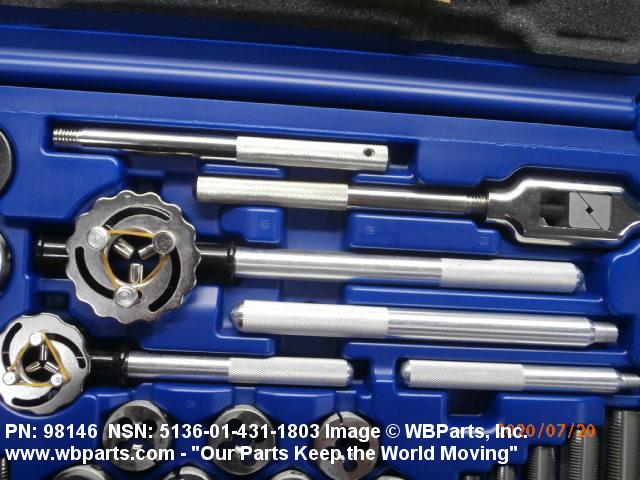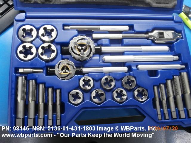 5136-01-431-1803 A group of items under DIE, THREAD CUTTING and TAP, THREAD CUTTING having different characteristics. It includes a case but does not contain diestock(s) or tap wrench(es). Excludes THREADING SET, SCREW.