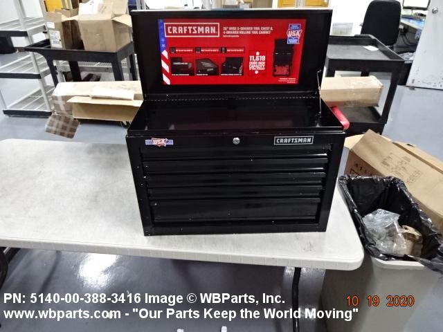 5140-00-388-3416 A hand carried metallic or nonmetallic container designed for carrying or storing of hand tools (powered or nonpowered). It may contain drawer(s) or tray(s). It may have a drop front panel and/or till in top compartments. It does not include tools.
