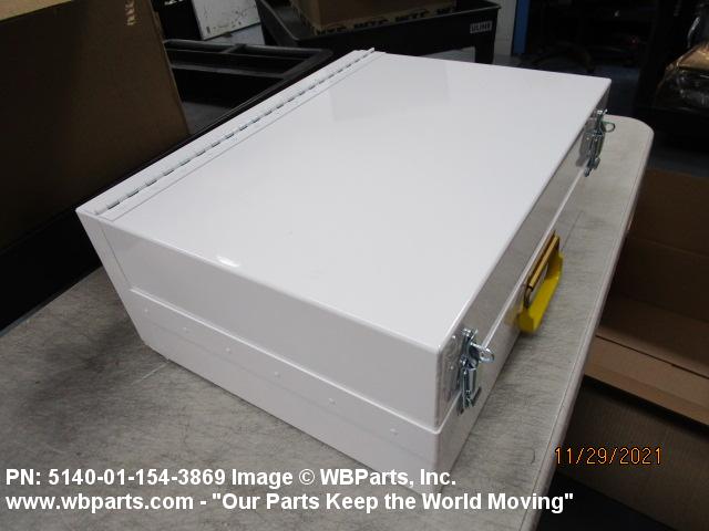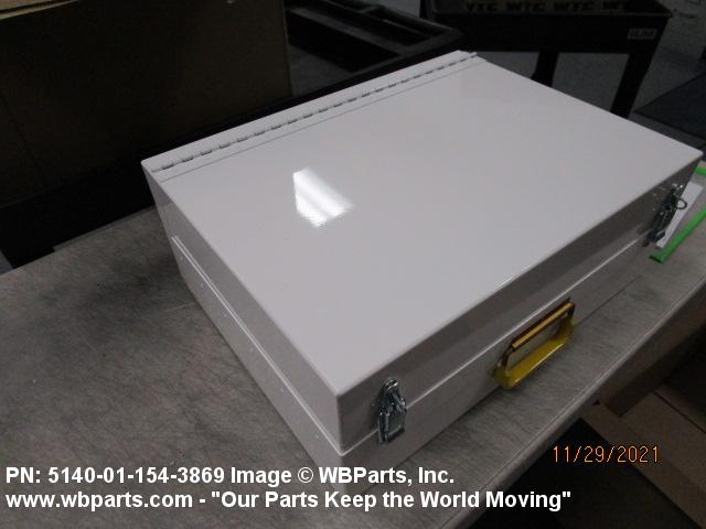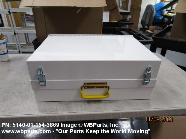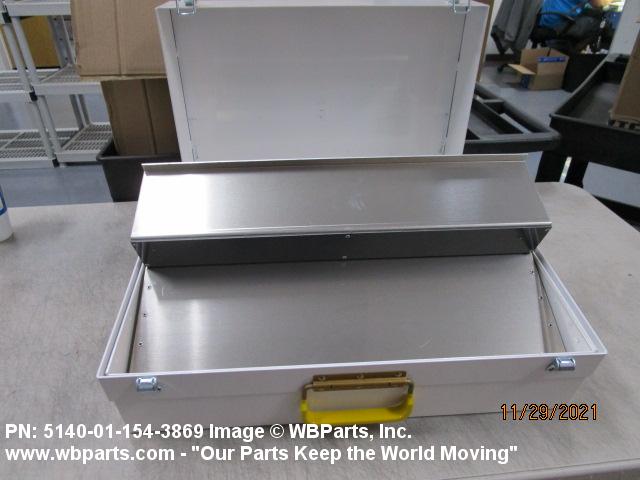 5140-01-154-3869 A hand carried metallic or nonmetallic container designed for carrying or storing of hand tools (powered or nonpowered). It may contain drawer(s) or tray(s). It may have a drop front panel and/or till in top compartments. It does not include tools.