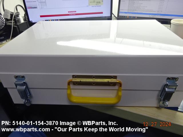 5140-01-154-3870 A hand carried metallic or nonmetallic container designed for carrying or storing of hand tools (powered or nonpowered). It may contain drawer(s) or tray(s). It may have a drop front panel and/or till in top compartments. It does not include tools.