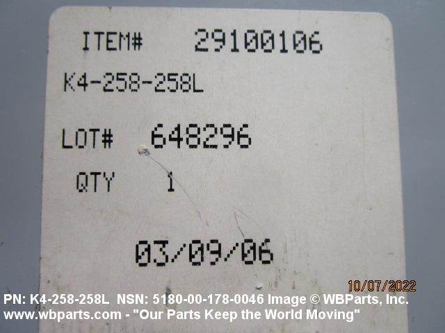 NSN 5180-00-178-0046 K4258258L, K4-258-258L, 10082415