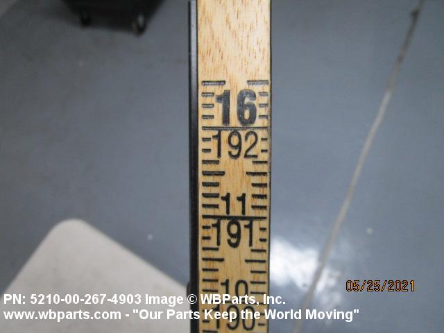 5210-00-267-4903 A long thin item designed to measure the liquid level in bulk petroleum tanks, and the like. Excludes GAGE ROD, LIQUID LEVEL; GAGE ROD-CAP, LIQUID LEVEL and GAGE ROD-BREATHER, LIQUID LEVEL.