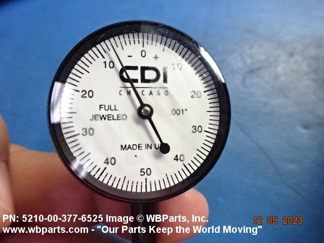 5210-00-377-6525 A mechanism for amplifying and measuring the displacement of a movable contact point, thereby measuring a dimension or variation from a standard dimension. It consists essentially of a case with means for mounting the indicator, a spindle carrying the contact point, an amplifying mechanism, a pointer and a graduated dial. May include accessories and/or attachments. Excludes INDICATOR, SCALE. See also GAGE, DEPTH, DIAL INDICATING.