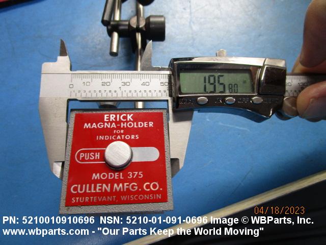 | GENERAL CHARACTERISTICS ITEM DESCRIPTION | MAGNETIC BASE; 1-5/8 IN. W X 1-7/8 IN. D X 1-15/16 IN. H; 3/8 IN. DIA X 7-7/16 IN. LG POST; 1/4 IN. DIA X 6 IN. LG ROD; INDICATOR ATTACHMENT; ON-OFF SWITCH FOR MAGNET; GRIPS CURVED OR FLAT SURFACES |
