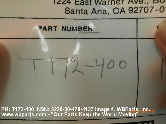 Part Alternates: T172400, T172-400, 5220-00-478-4137, 00-478-4137, 5220004784137, 004784137