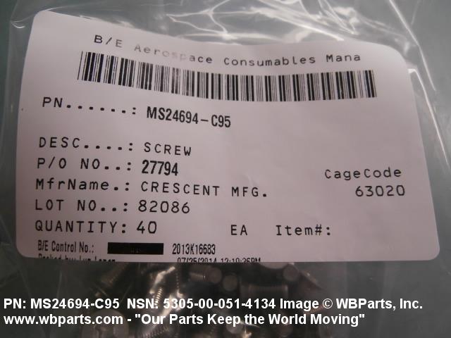 Part Alternates: MS24694C95, NASM24694C95, NASM24694-C95 , 10124869 , 5305-00-051-4134, 00-051-4134, 5305000514134, 000514134