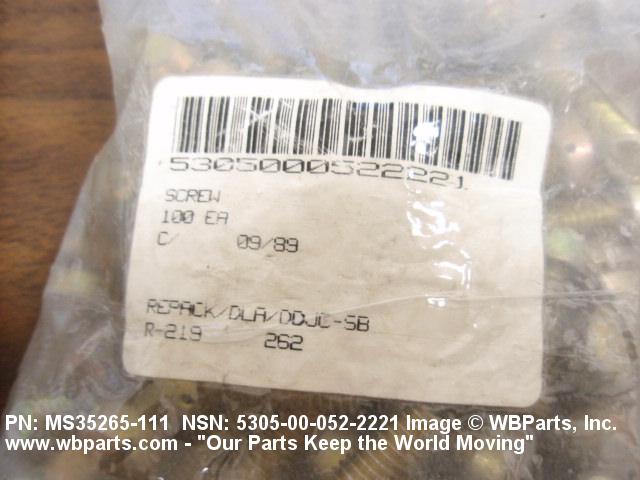 NSN 5305-00-052-2221 MS35265111, MS35265-111, 00-052-2221