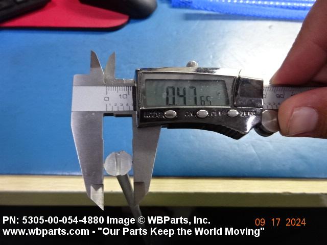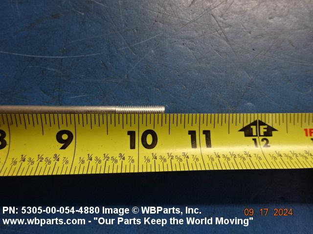 5305-00-054-4880 An externally threaded fastener whose threaded portion is of one nominal diameter, No 0 (0.060 in./1.5 mm) or larger, designed to be held or driven with either a wrench or an inserted driver or both (excluding internal socket or internal multiple spline types), in sizes below No. 10 (0.190 in./5 mm). No. 10 and larger sizes must have a head designed for any type inserted driver (excluding internal socket or internal multiple spline types), but may also be designed for external wrenching. A locking feature may be incorporated in the design of the head or threads. Excludes BOLT, CLEVIS; BOLT, EXTERNALLY RELIEVED BODY; SCREW, EXTERNALLY RELIEVED BODY; and SCREW, ASSEMBLED WASHER. See also, SCREW, INSTRUMENT; BOLT, MACHINE; BOLT, INTERNAL WRENCHING; and SCREW, CAP SOCKET HEAD.