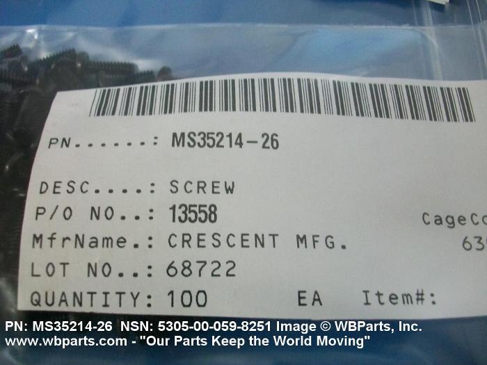 | MS35214-26 | 96906 | MILITARY STANDARDS PROMULGATED BY MILITARY DEPARTMENTS |