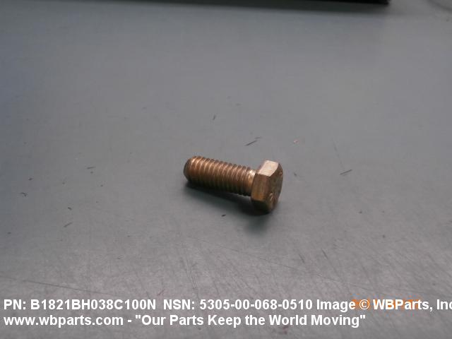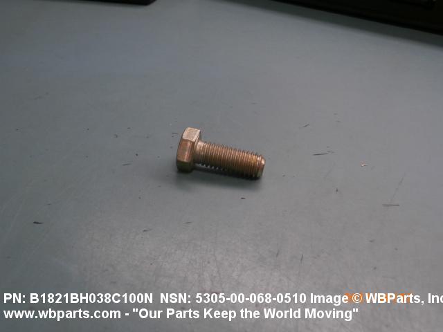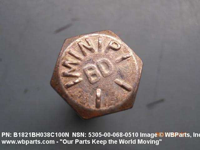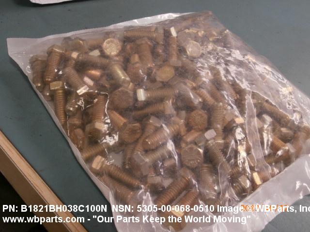 5305-00-068-0510 An externally threaded fastener designed for insertion into holes in assembled parts, for mating with a preformed internal thread and for tightening or releasing by torquing the head. The threaded and unthreaded portions are both of the same nominal diameter of 0.190 inch (5 mm) or larger. Head dimensions and sizes of threaded and unthreaded portions shall conform to internationally recognized fastener standards. The thread length being the controlled dimension, the grip length is not specified. A locking feature may be incorporated in the design of the head or threads. The head is not designed to be held or driven with an inserted driver or by the thumb and fingers. Excludes BOLT,MACHINE; BOLT,EXTERNALLY RELIEVED BODY; BOLT,INTERNAL WRENCHING; and SCREW,CAP,SOCKET HEAD.