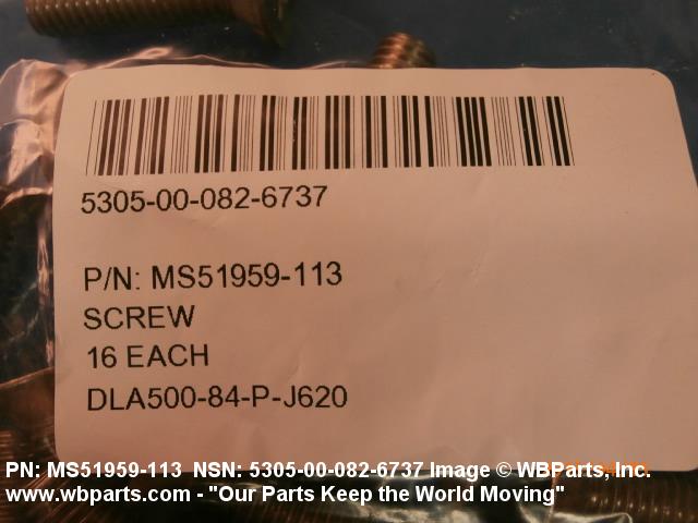 Part Alternates: MS51959113, MS51959-113, 5305-00-082-6737, 00-082-6737, 5305000826737, 000826737