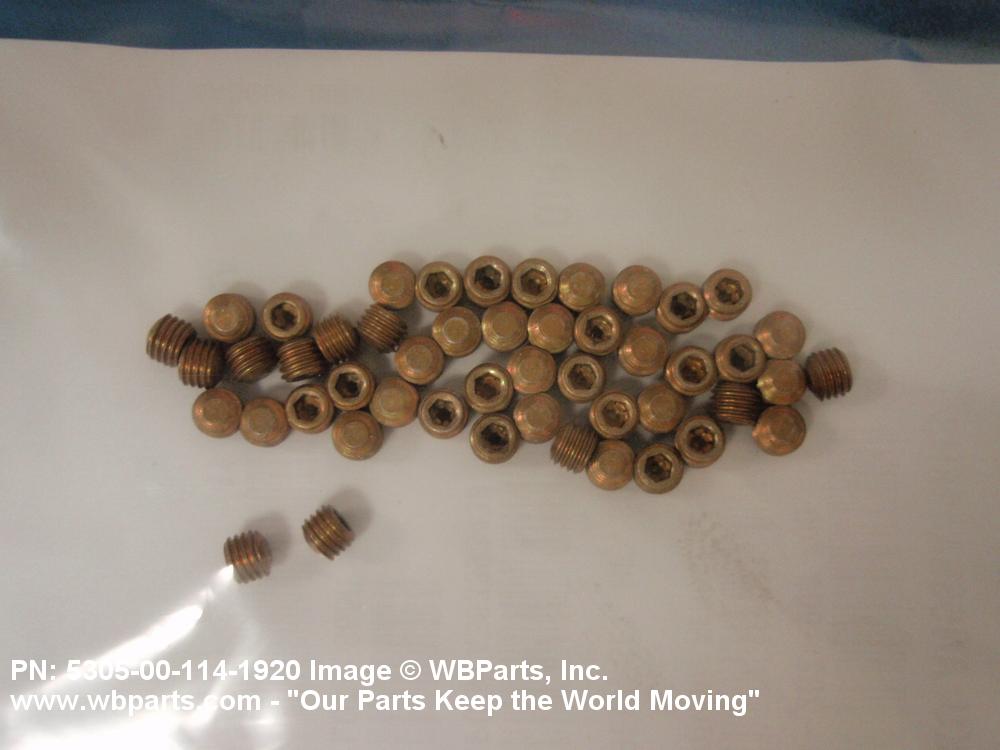 5305-00-114-1920 An externally threaded device whose threaded portion is of one nominal diameter with or without a head and having a cup, cone, or other type of machined point designed to prevent or restrict relative movement of parts and designed to be driven with either a wrench or inserted driver. A locking feature may be incorporated in the design of the head or threads.