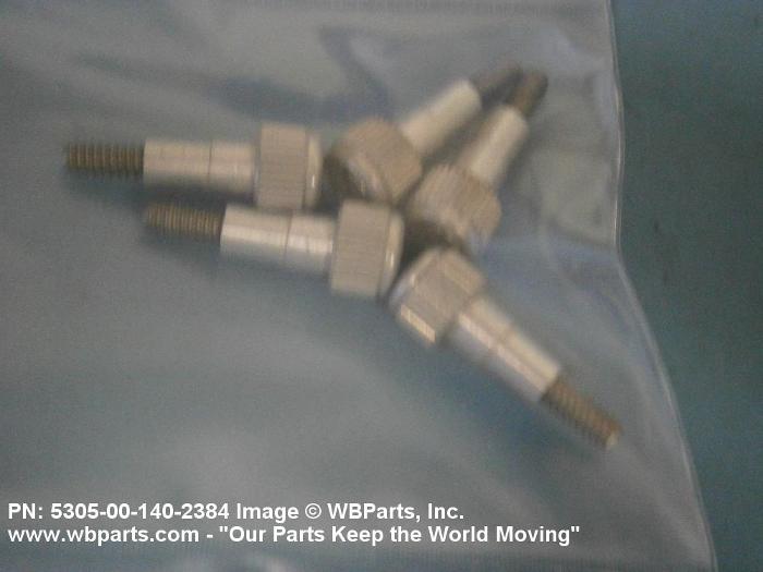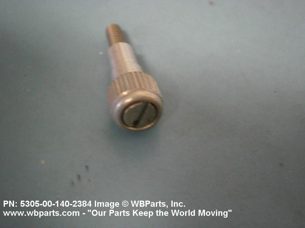 5305-00-140-2384 A headed, threaded fastening device over which may be assembled; (1) a stand-off; (2) a flanged bushing with washer(s) and/or a shouldered bushing without a flange, or it may have an internally threaded sleeve that is an integral part of the screw; a washer and an externally thread self-locking bushing that is driven by an inserted driver. Attached to panel by threaded bushing or by flaring end of stand-off, or bushing. Used in conjunction with a speed nut, nut plate, or driven into a threaded hole in the item that the panel is fastened to. May be spring loaded.