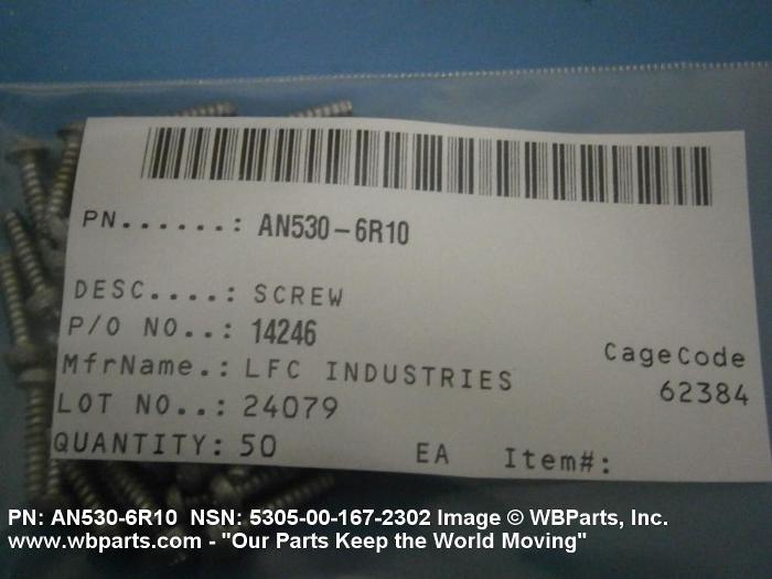 Part Alternates: AN5306R10, AN530-6R10, 5305-00-167-2302, 00-167-2302, 5305001672302, 001672302