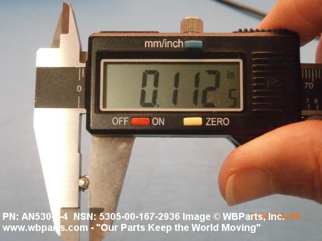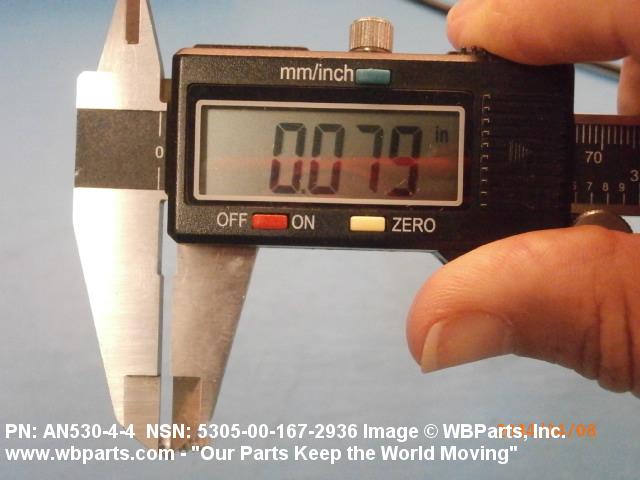 Part Alternates: AN53044, AN530-4-4, TYPEZSIZE4, 2627855, 26278-55, 531678132ND, 531678-132ND, 54Z44, 54Z4-4, 5305-00-167-2936, 00-167-2936, 5305001672936, 001672936