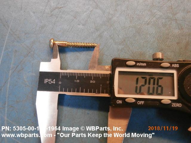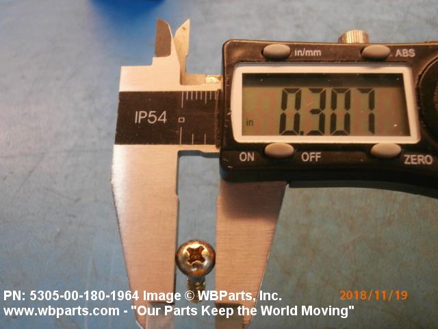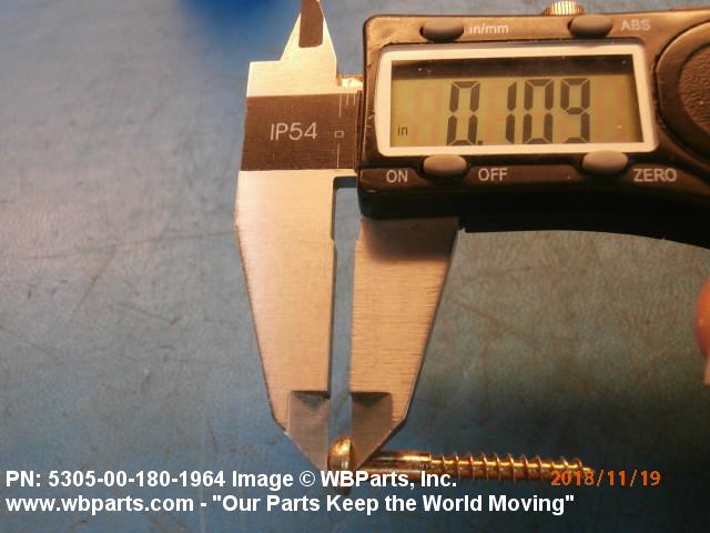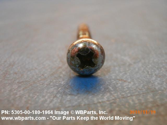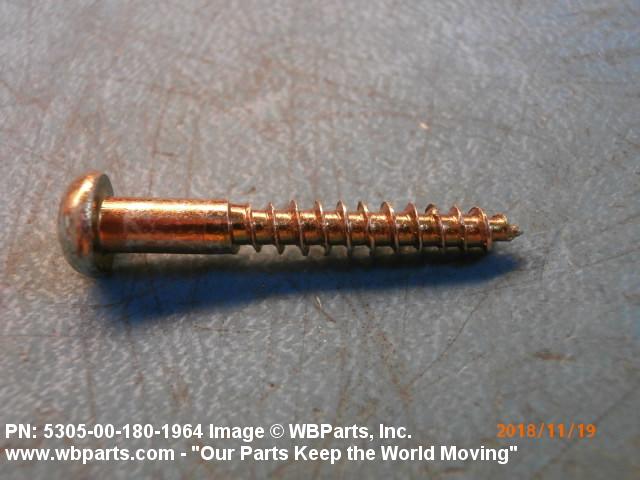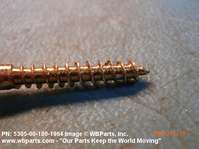 5305-00-180-1964 An unhardened externally threaded fastener whose continuous thread extends from a gimlet point for a distance of approximately two-thirds of the length of the screw and which is designed to be driven with an inserted driver.