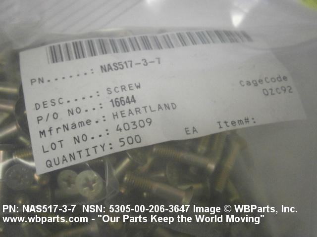 | NAS517-3-7 | 80205 | NATIONAL AEROSPACE STANDARDS COMMITTEE AEROSPACE INDUSTRIES |