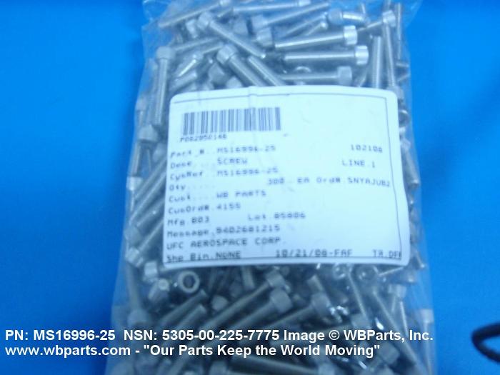 | MS16996-25 | 80205 | NATIONAL AEROSPACE STANDARDS COMMITTEE AEROSPACE INDUSTRIES |